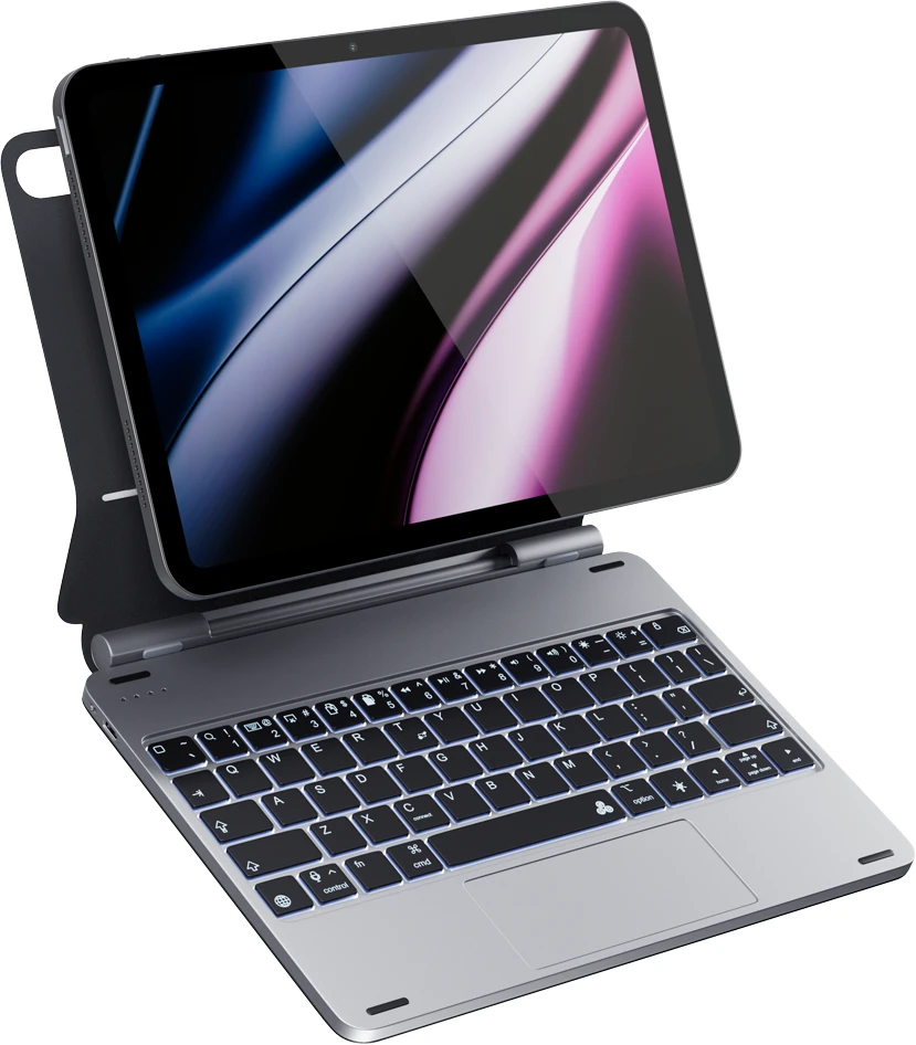 Epico Aluminium Keyboard Case ist das perfekte Zubehör für Ihr iPad, das sich kabellos über Bluetooth verbinden lässt. Die Hülle ist aus einem Alu-Gehäuse und PU-Leder gefertigt und bietet zuverlässigen Halt für Ihr Tablet. Die Hülle dient auch als Ständer, der Ihr iPad im idealen Winkel hält, so dass Sie ihn als Monitor verwenden können. Das Multi-Touch-Trackpad, das auf das Antippen auf der gesamten Oberfläche reagiert, erleichtert die Bedienung. Die hintergrundbeleuchtete Tastatur verfügt über sieben Farben mit einstellbarer Helligkeit und zahlreiche Tastenkürzel, wie z. B. die Tasten zum Kopieren/Einfügen. Die Tastatur hat eine lange Akkulaufzeit (bis zu 3 Monate im Standby-Modus) und lässt sich separat aufladen. Im Lieferumfang enthalten ist ein USB-C auf USB-C-Kabel.
